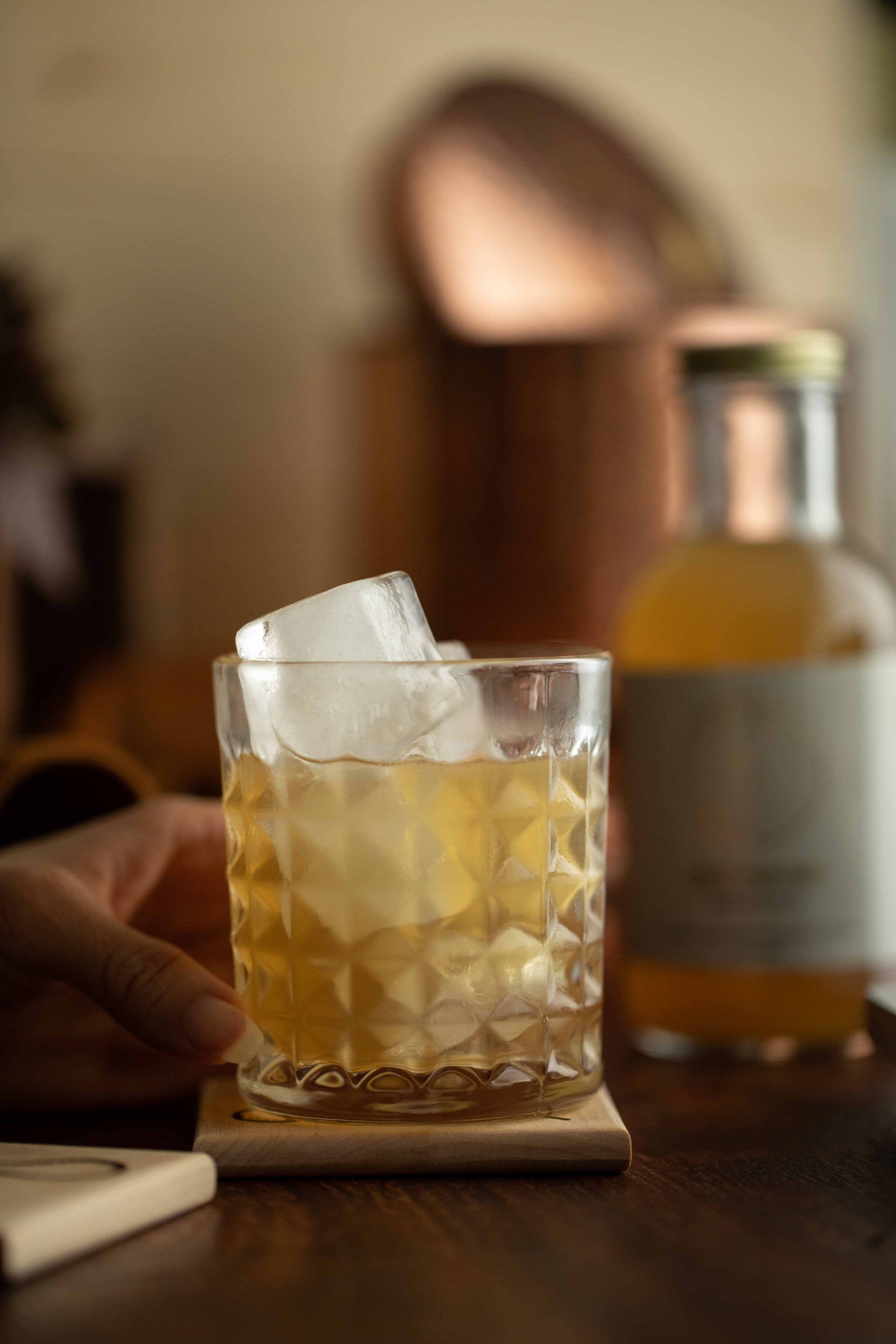 Kvas Honey Ginger Cocktail Mix - 3/4 oz Lemon Juice - 2 oz Soda Water Other ideas include Riesling Mojito, moscow mule, Bee's Knees