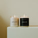 Our candles are in burn-safe glass with a black metal lid. They are reusable and easy to re-purpose at home or recycle.