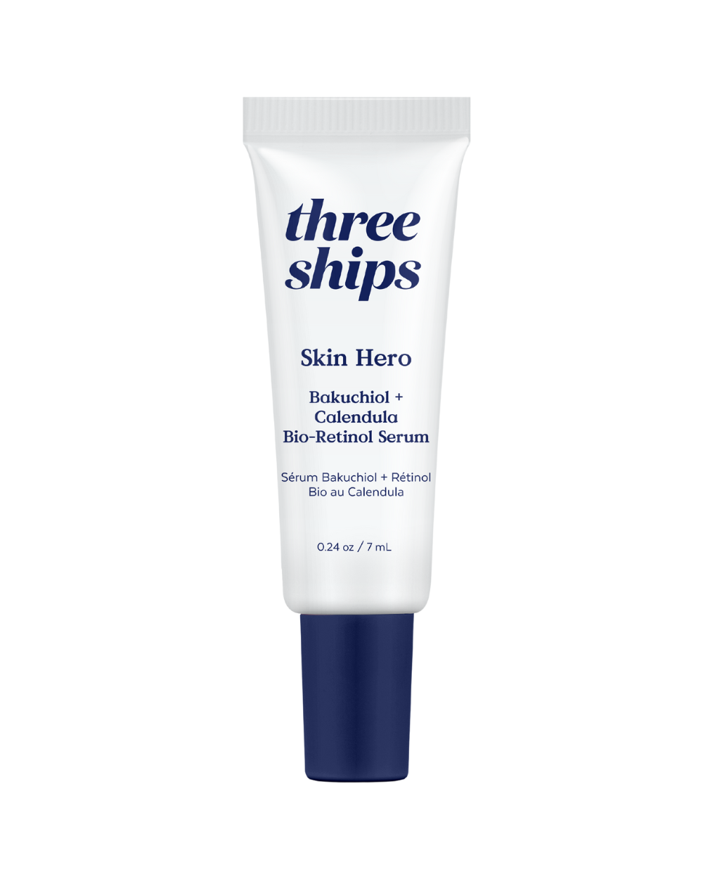 Skin Hero Bio-Retinol Serum Mini:Lactic + Multifruit 8% AHA Exfoliating Mask Bakuchiol + Calendula Bio-Retinol Serum. This multi-talented serum helps smooth the look of wrinkles, even skin tone and reduce the appearance of breakouts — all while soothing and hydrating the skin.